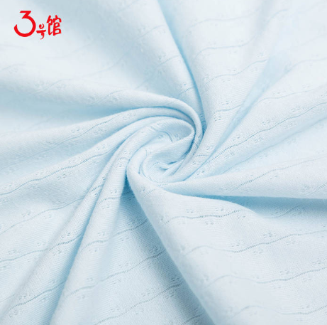 30s棉单面提花:这款布料的成份为95%棉+5%氨纶,面料的克重跟幅宽分别为130g/m²和175cm,布料可用于生产宝宝服装、月子服等产品,面料的价格为50块钱每米。