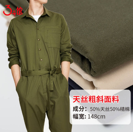 天丝粗斜面料:布料的成份为50%天丝+50%精棉,面料整体吸湿透气性非常不错,手感细腻且非常亲肤,做成阔腿裤后有着很好的悬垂性,面料价格为33元每米。
